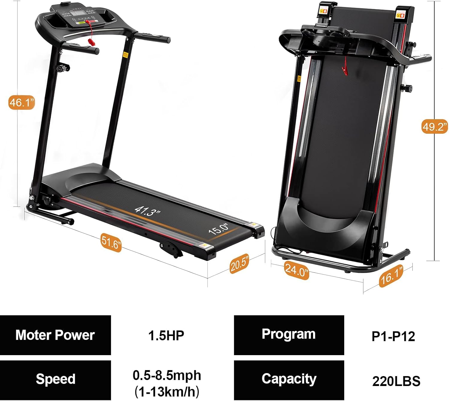 I received this treadmill just one day after placing my order, and I’m thrilled with my purchase! Setting it up was a breeze; it took only 15 minutes to get everything ready. The manual is straightforward and features clear visuals, making it easy to operate the treadmill. The buttons are perfectly sized and highly accessible while running.The compact design of this treadmill is fantasticâit’s lightweight and can be effortlessly pushed into tight spaces. The incline adjusts smoothly, and the belt runs quietly, which enhances the overall experience.I’m particularly impressed with the handle speed control and the robust safety features. This treadmill exceeded my expectations, and I confidently say it’s an excellent product for the price. Plus, it looks amazing!ed with the handle speed control and the robust safety features. This treadmill exceeded my expectations, and I confidently say it’s an excellent product for the price. Plus, it looks amazing!