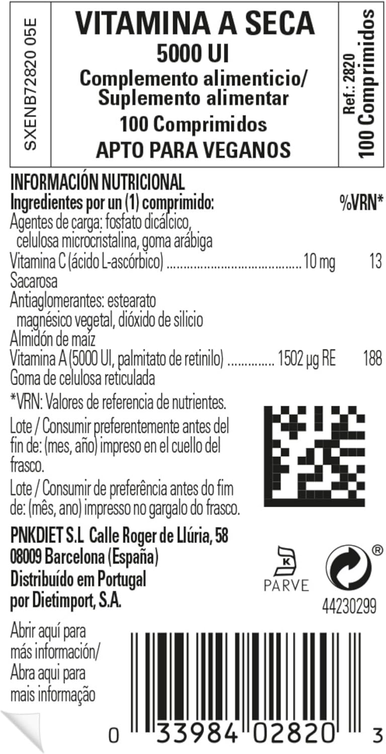 Solgar Dry Vitamin A 1500 mcg (5000 IU), 100 Tablets – Supports Healthy Eyes, Skin & Immune System – Non-GMO, Vegan, Gluten Free, Dairy Free, Kosher – 100 Servings