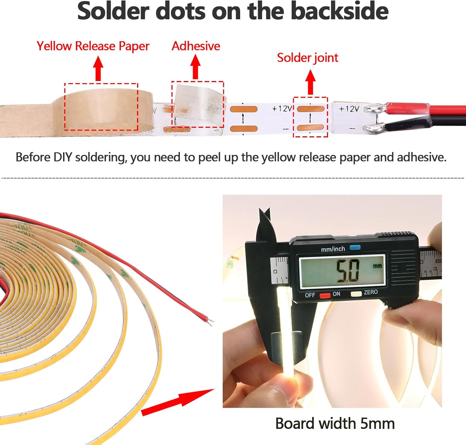 DC 12V COB LED Strip Light 16.4ft(5M) Specification