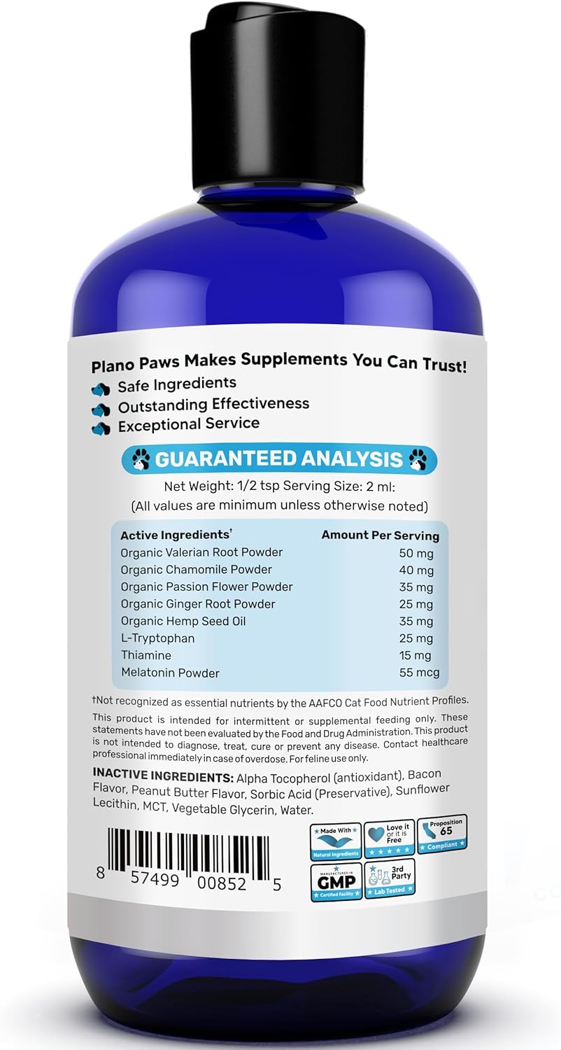 Made with Natural Ingredients: Our unique blend, featuring hemp oil for cats, delivers a safe anxiety relief without the need for traditional cat calming treats. Perfect for pets of all ages, this liquid supports a calm demeanor.