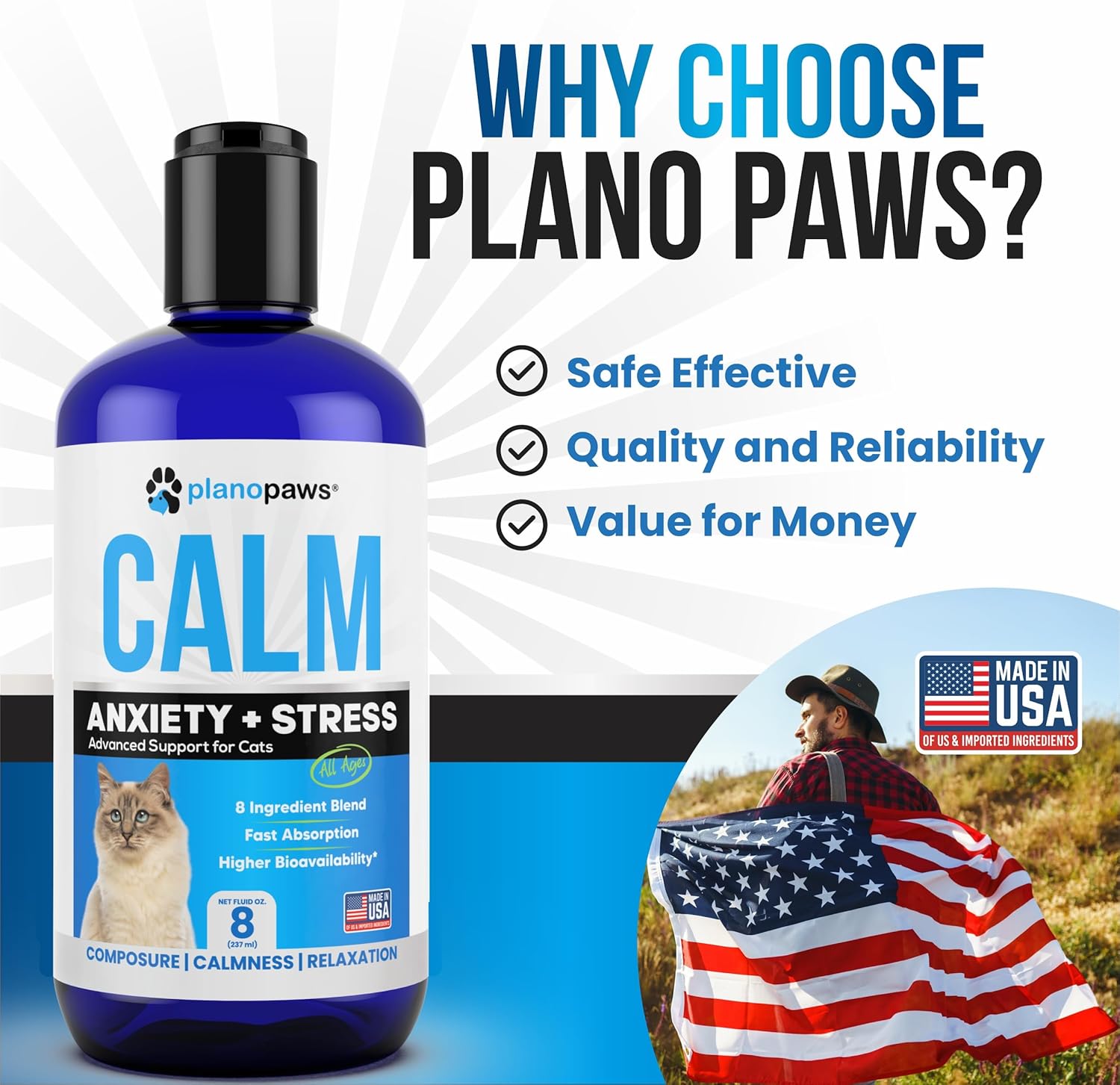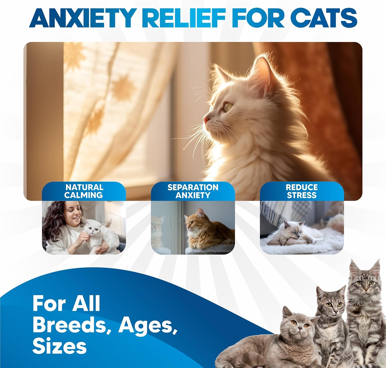 Cat Anxiety Relief 90 Day Supply – Faster Absorption Than Cat Calming Treats – Cat Calming Products for All Ages – Liquid Calming Cat Treats for Sleep Aid – 8 Ingredient Blend + Cat Melatonin