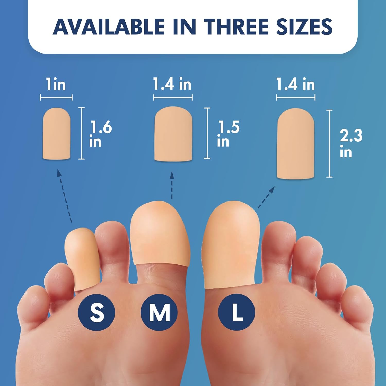 Non-Slip Comfy Gel: Our Gel Toe Protectors are designed with you in mind. Seriously, these stay on your toes all gosh darn day. The soft gel is flexible enough to move with you, while still providing all the cushioning you deserve. Plus, our toe caps are latex and silicone-free. And with THREE SIZES, we assure these toe caps will conform to your toes, allowing you full range of motion without worrying about slippage.