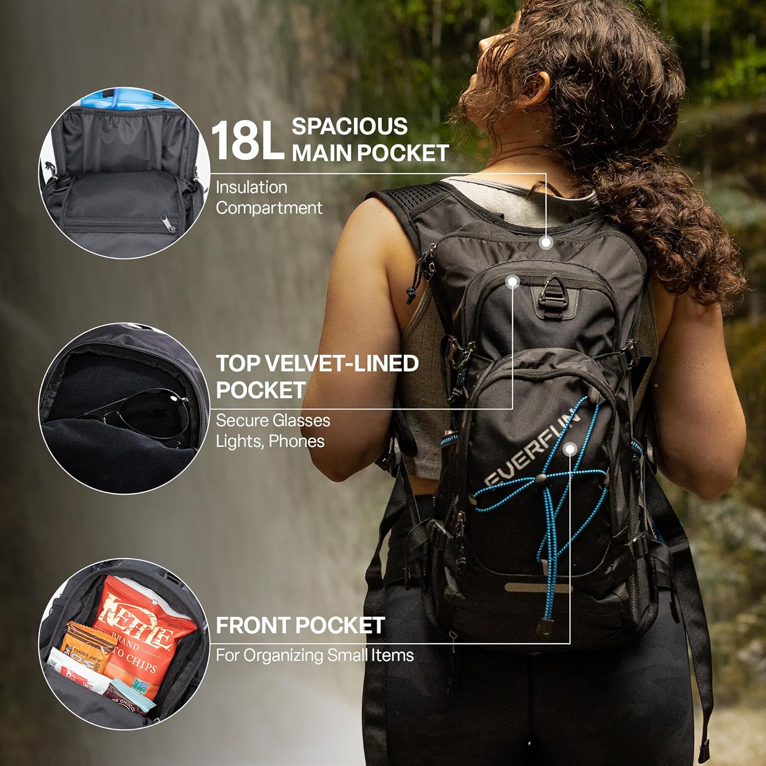 Everfun Hydration Backpack 18L with Water Bladder 2L/3L Hiking Water Backpack Women Men Hydration Pack Insulated Lightweight Day Hydropack with Storage for Hiking, Biking, Running, Festival