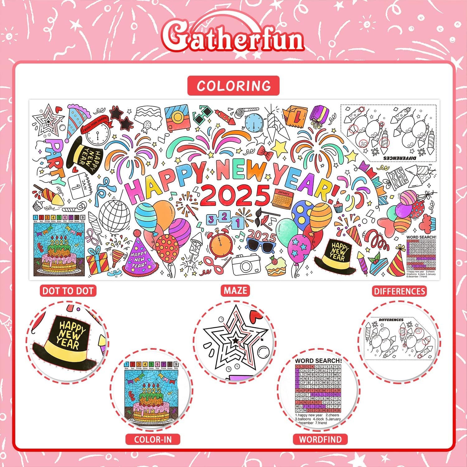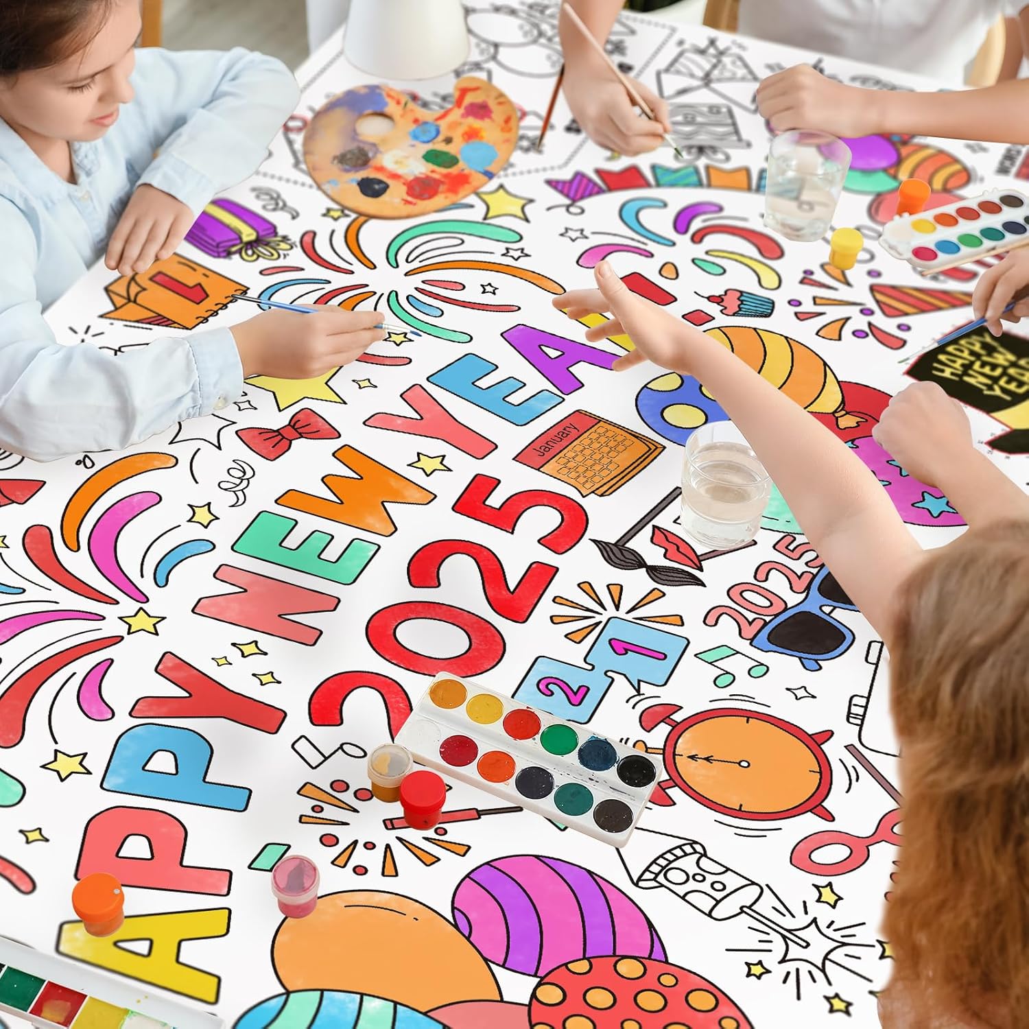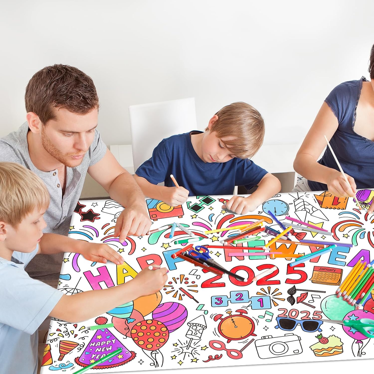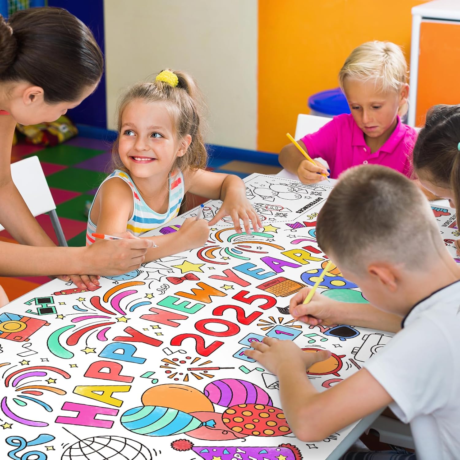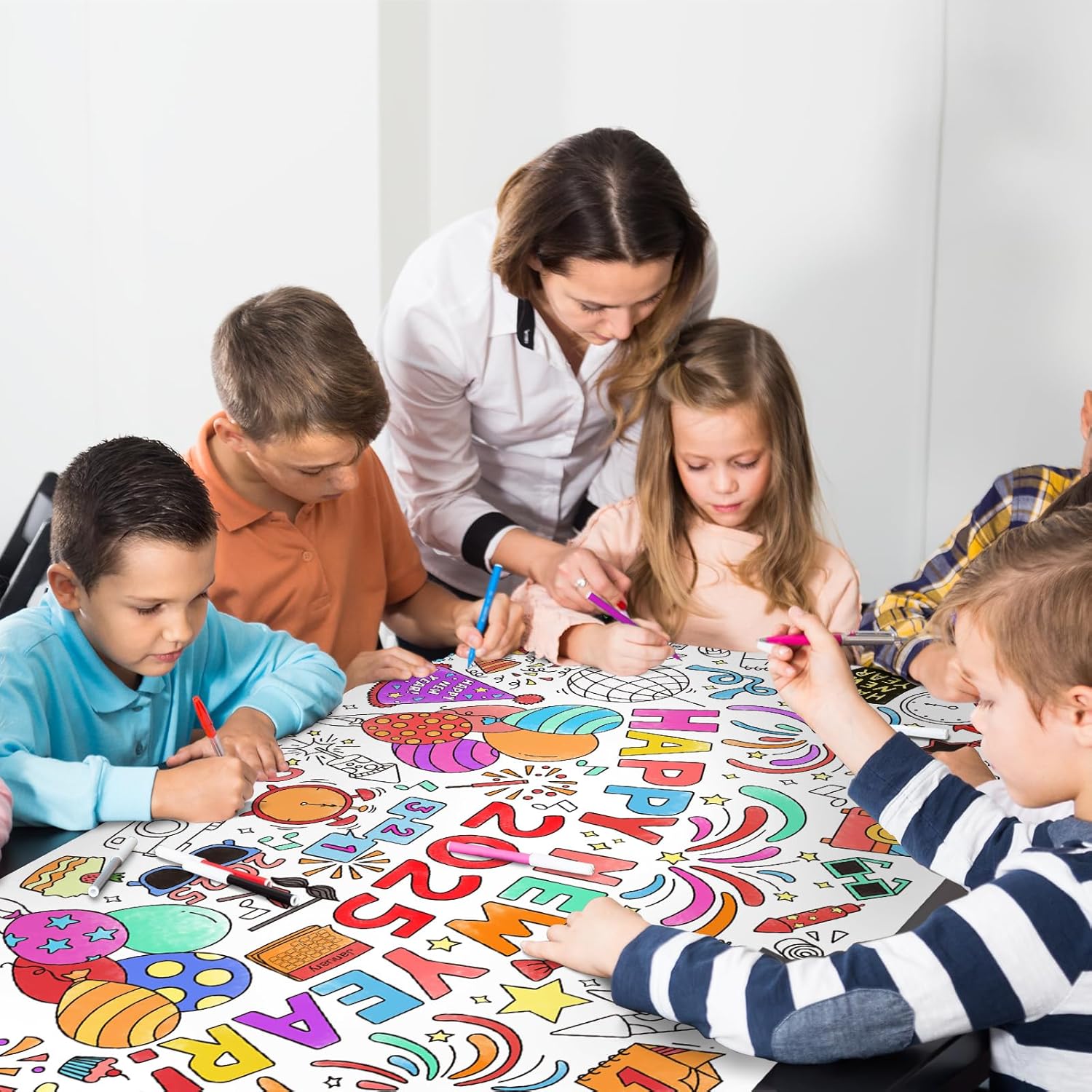 Giant Coloring Poster for Classroom Wall – Versatile 31.5 x 72 Inches Happy New Year Activity Poster/Table Cover, School Parties, Happy New Year Party and Special Events Decoration