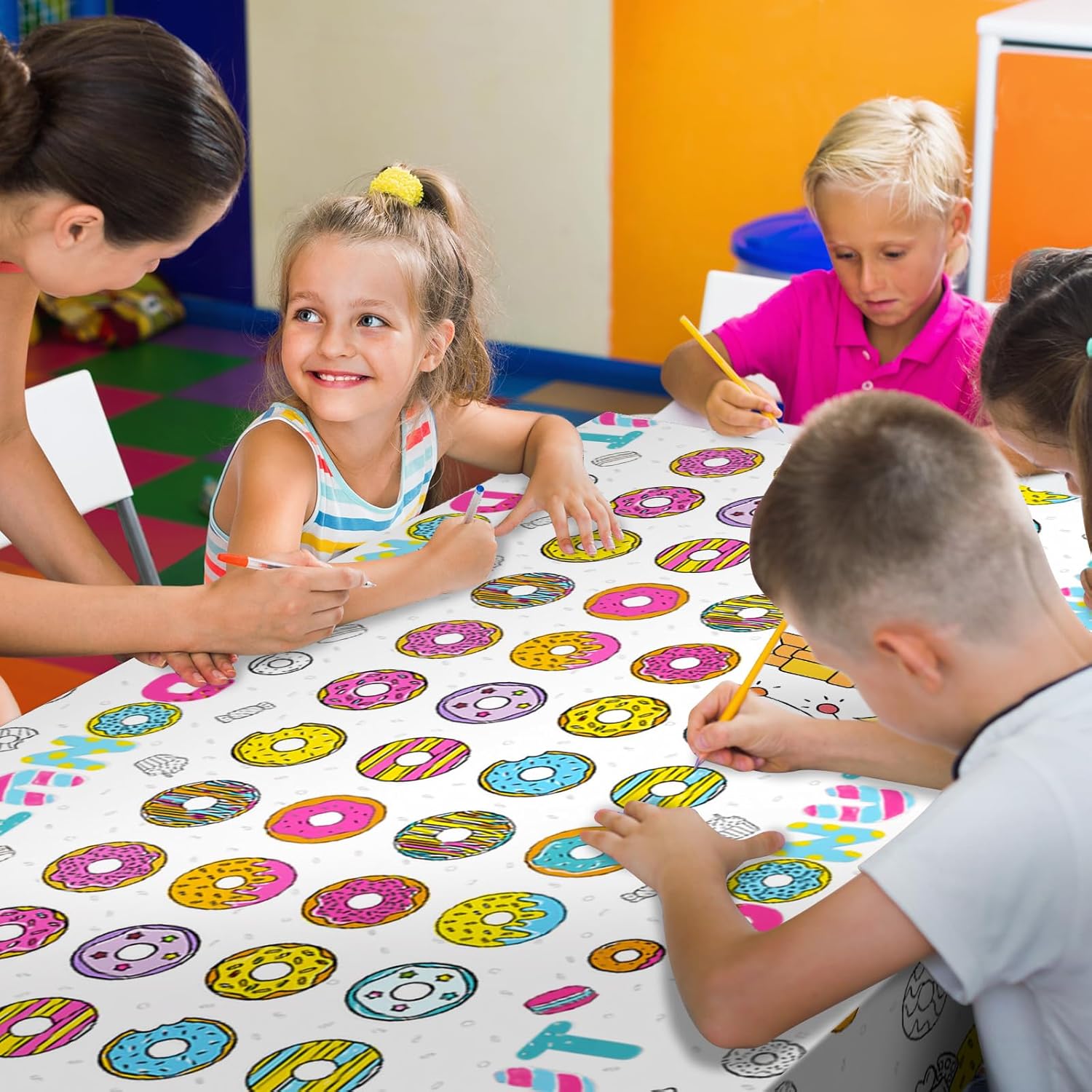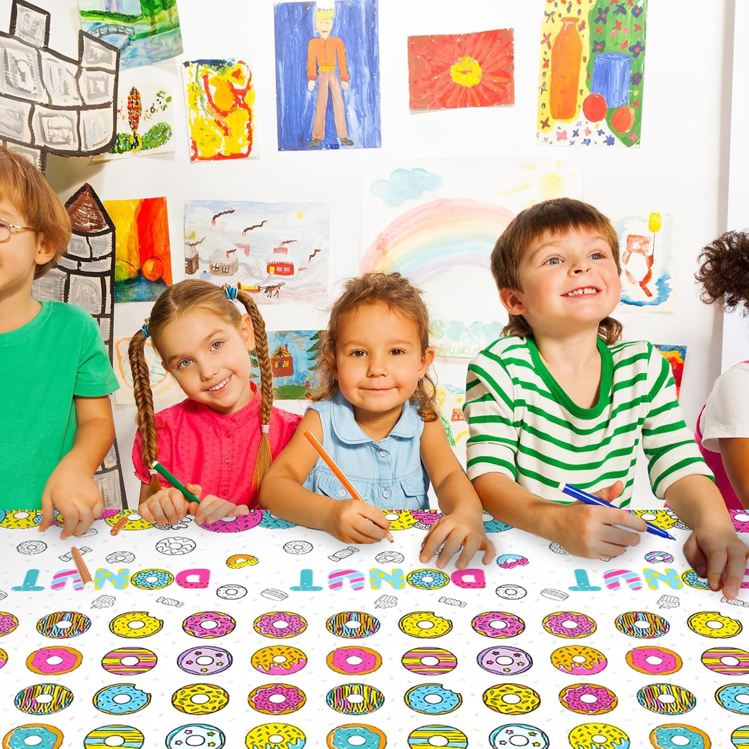 PERFECT FOR KIDS: very suitable for donut party, class activities, classroom decoration, parent-child activities, birthday parties, etc, and enjoy the fun of painting with family and friends; coloring paper tablecloth can help improve children’s color cognition ability, hands-on ability and imagination