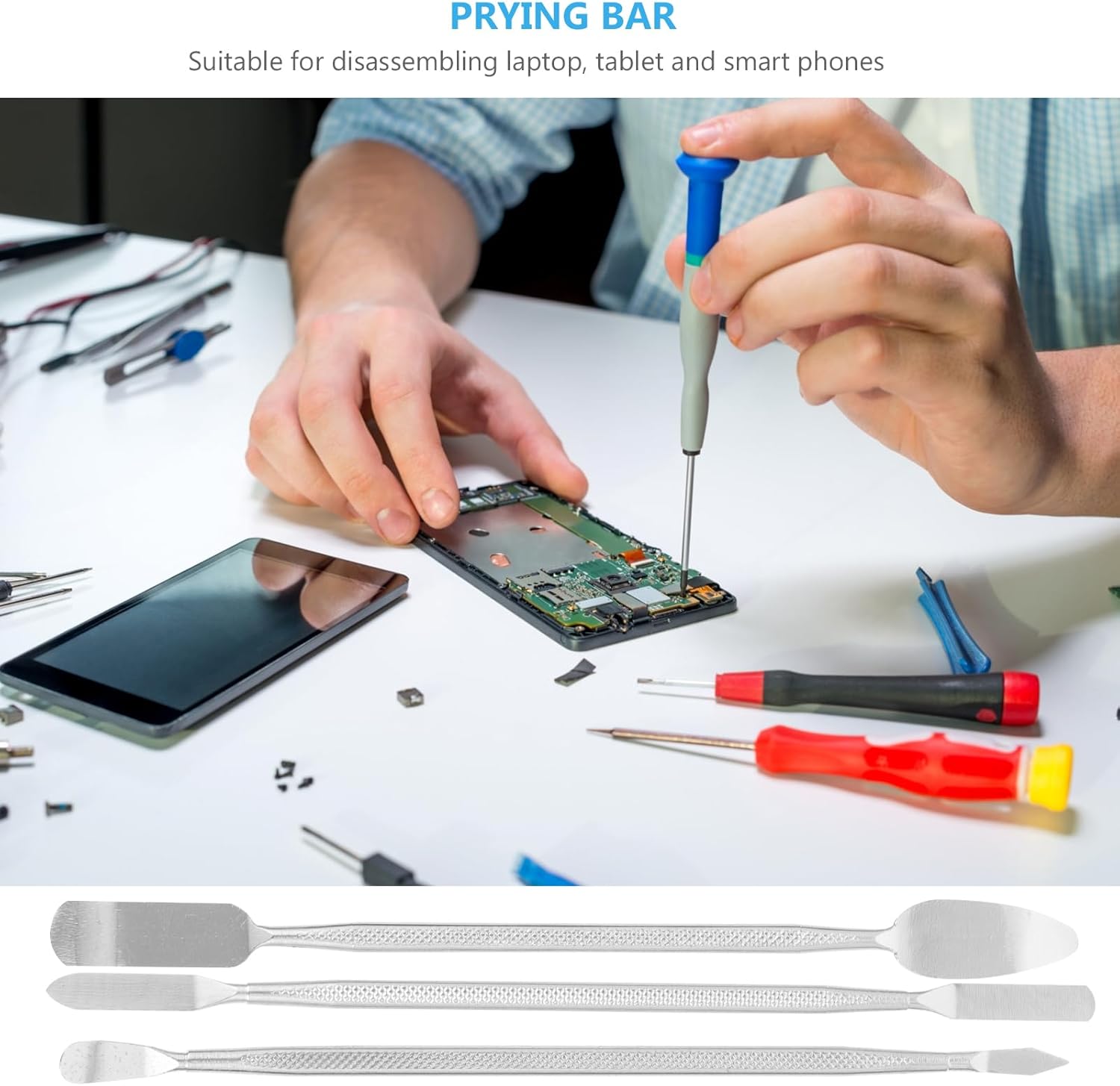 This pry tool set has been useful for opening a variety of devices, including my laptop and an older smartphone. The double-head crowbar design is convenient since it offers different tip options depending on the device I’m working on. The tools feel sturdy. However, since they’re metal, they can scratch or leave marks on plastic casings or delicate parts if too much force is applied. I recommend using them with caution on fragile components to avoid accidental damage. I’ve found that using them alongside a plastic tool helps minimize the risk of damage.