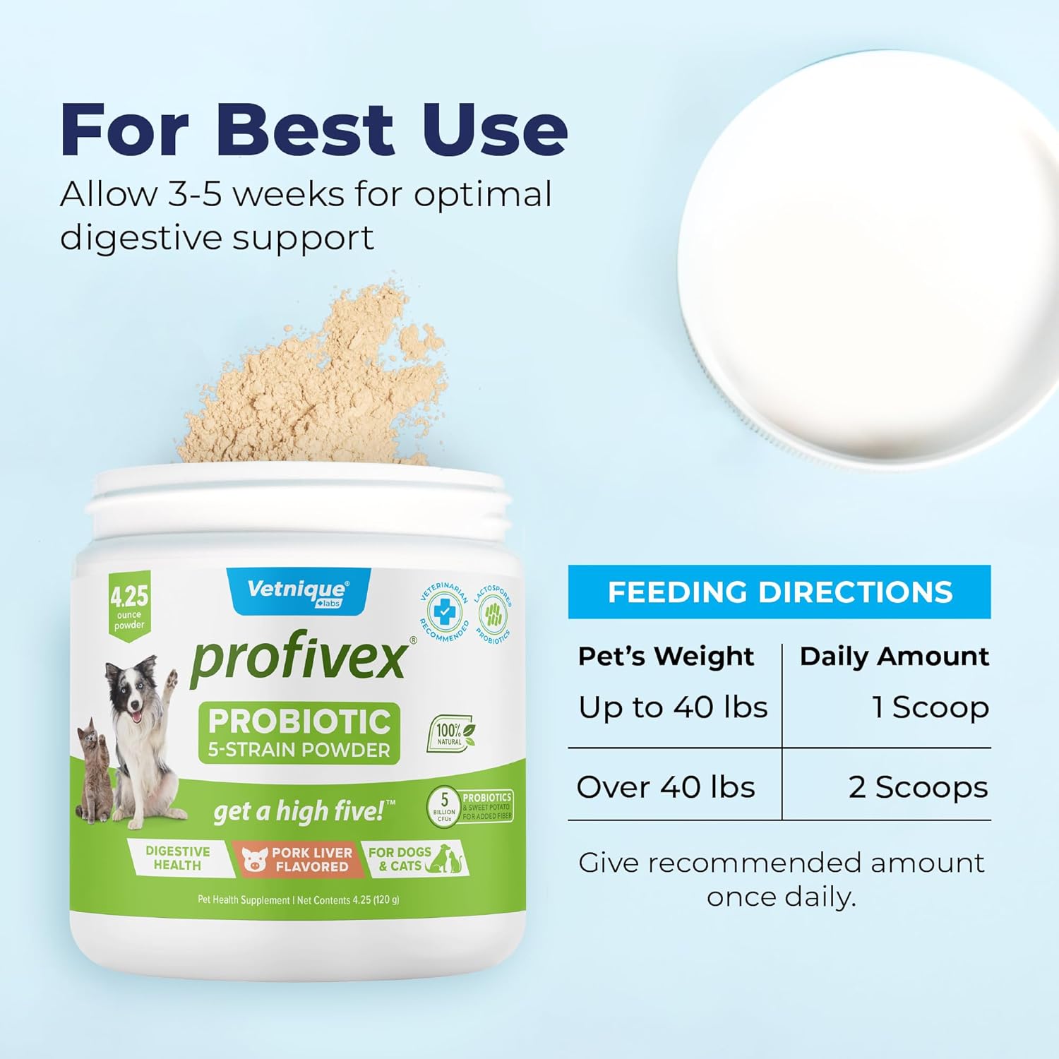 Vetnique Labs Profivex Probiotics for Dogs All Natural Dog Chews & Powder for Digestive Health Probiotic Supplements for Dogs 5 Strains of Probiotics & Prebiotics (Powder, 4.25oz)
