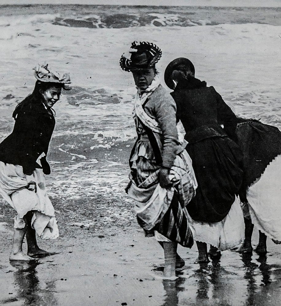 Dressed head-to-toe in hats, blouses, bloomers, and stockings, it’s a far cry from how people dress for the beach today. Nevertheless, Martin captured photos of people behaving distinctly un-Victorian; clinching a lover in the sand, joking around for the camera, and smiling while enjoying a beach concert.